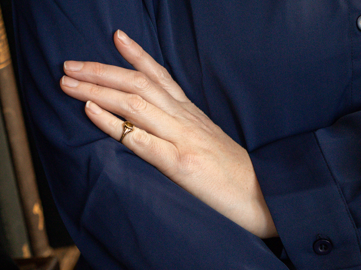 Dating back to the 1800s, baby rings were a popular choice for gifts given to women by their husbands as a gesture of gratitude and love. This particular baby ring features a Mali garnet, securely bezel set in yellow gold. With its oval cut Mali garnet and tapered shoulders, this baby ring would be a great charm to wear on a necklace to keep it close to your heart.