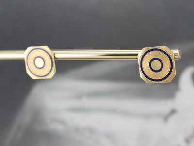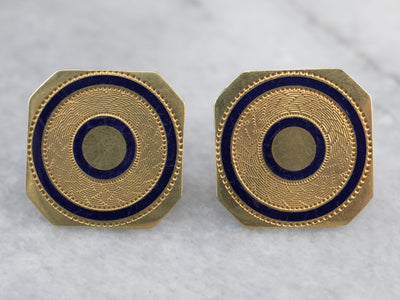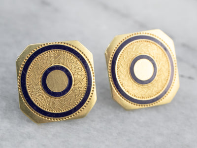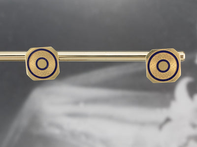 We've crafted these one-of-a-kind earrings using vintage cufflinks! The simple geometry created by the blue enamel accents is minimalist and eye-catching, while the different textures create a lovely play of light. These earrings are versatile and great for everyday wear!