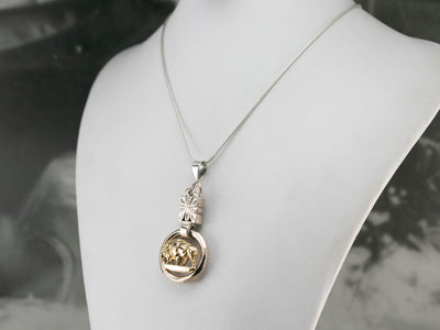 Handcrafted by our master metalsmiths, this is a bold mixed metal piece featuring a floral sterling silver base with a detailed gold buffalo. The buffalo is a symbol of power, strength, and survival. Making this a thoughtful gift and symbolic gift!