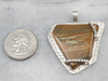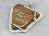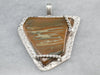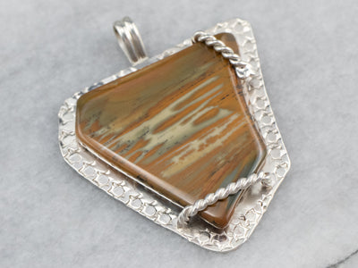 This statement pendant has an organic feel that is distinctly bohemian! The stone is an earthy brown jasper with tones of sienna, stormy grey, and sand. The sterling silver frame is specially designed to hold the stone perfectly.