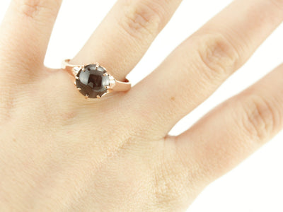 The Woodman Ring Metal: 14K Rose Gold Gem: Cat's Eye Sillimanite 4.07 Carats Gem Measurements: 9.1 mm, Round Ring Size: 9 Marks: "14K" Stamped on the inside band