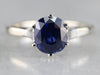 Elegant and simple, this vintage mounting of polished white gold featured a crown link six prong head and lightly etched shoulders. This gorgeous mounting holds an incredible cushion cut Ceylon sapphire, with an intense and highly desired cornflower blue color. This color is a benchmark for high-quality sapphires and this one, in particular, has a rich and smooth blue color, with amazing faceting that really accents the color beautifully.