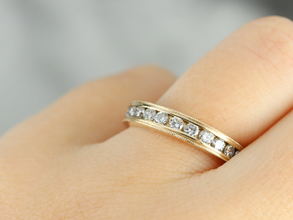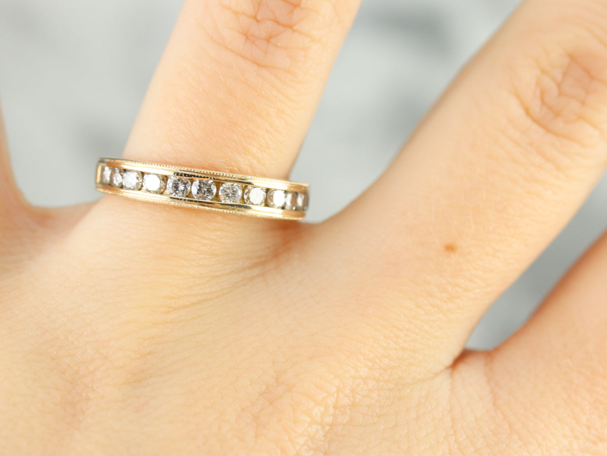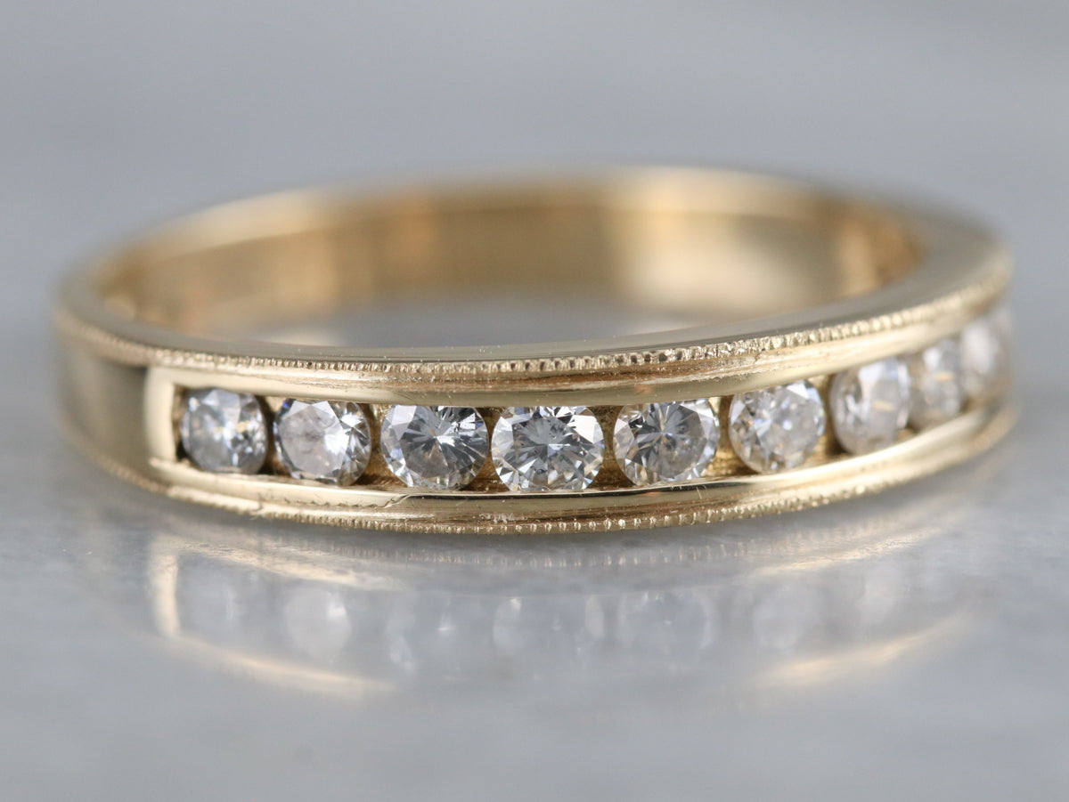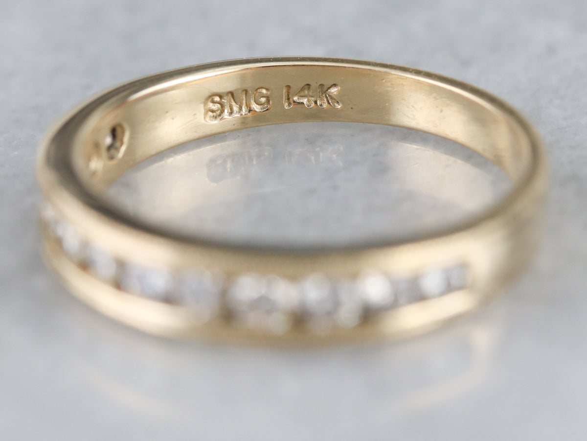 Channel settings never go out of style! The effect of one long row of diamonds, one band of glittering bright light, across the finger is always popular and always lovely. The sides of the ring completely encase the diamonds, keeping them safe and secure, which makes these rings easy to wear every day!