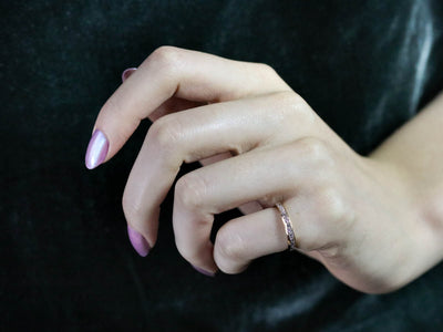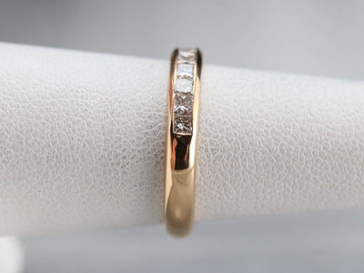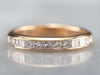 This vintage wedding band is set with a glittering row of square-cut, fine diamonds. The look they create is very 'Deco', and very modern at the same time. Large enough for a man or a woman, this is a great piece for a wedding day or stacking ring.