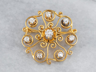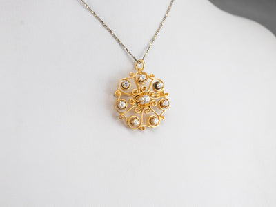 So beautiful! This piece dates to the early retro era with a nod to classic Victorian style. This pretty vintage piece is set with bright high-quality diamonds, a classic piece that will be a favorite for decades to come; a great pendant to wear alone or layer with other pieces. Alternatively, this can be worn as a brooch, a lovely size for a blouse or jacket lapel.