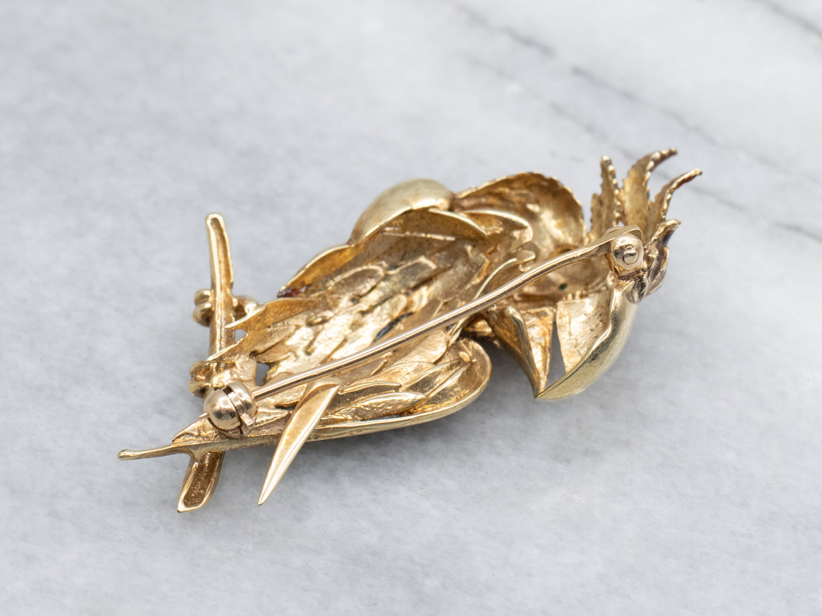 Vintage Gold Colorful Enamel Parrot Pin with Emerald Eye