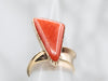 Metal: 14K Yellow Gold Gem: Coral Gem Measurements: 21.4 x 11.2 mm, Triangle Ring Size: 7.50 Marks: "KIRK 14K" Stamped on the inside band