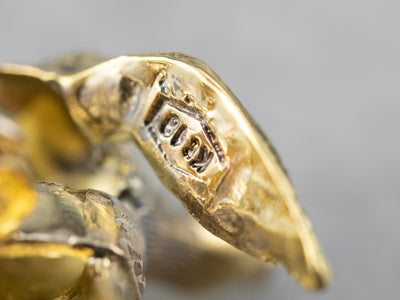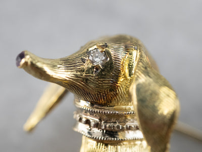 What an exceptionally handsome fellow! Obviously of the best lineage, this diamond eye enameled jacket-wearing Dachshund is detailed, with textured gold standing in for soft fur, and white gold creating a polished, high-class collar!