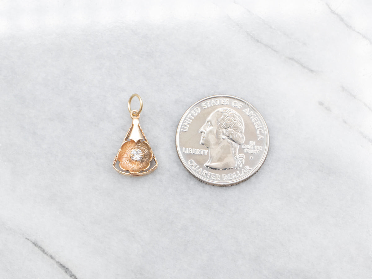 Add some sparkle to your style with this pendant. Crafted with gorgeous yellow gold, the diamond set on a delicate flower is sure to catch eyes and turn heads. Elevate any outfit with this stunning piece!