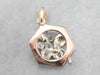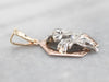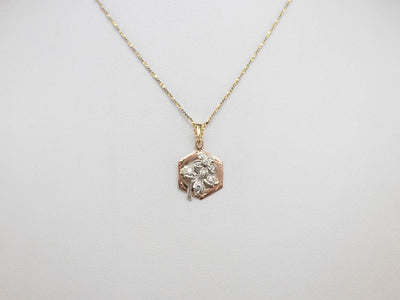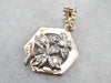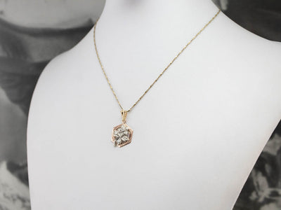 What a wonderful gift this diamond floral pendant would make for an April birthday occasion! Handcrafted from antique and vintage jewelry components, this pendant features a cheerful flower set with bright and sparkling diamonds. A contrasting frame of rose gold gives this pendant a lovely profile.