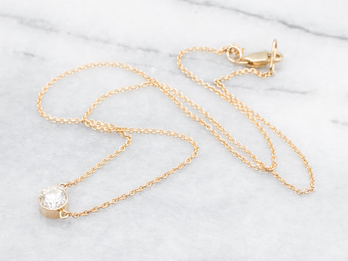 Yellow Gold Diamond Solitaire Pendant Necklace