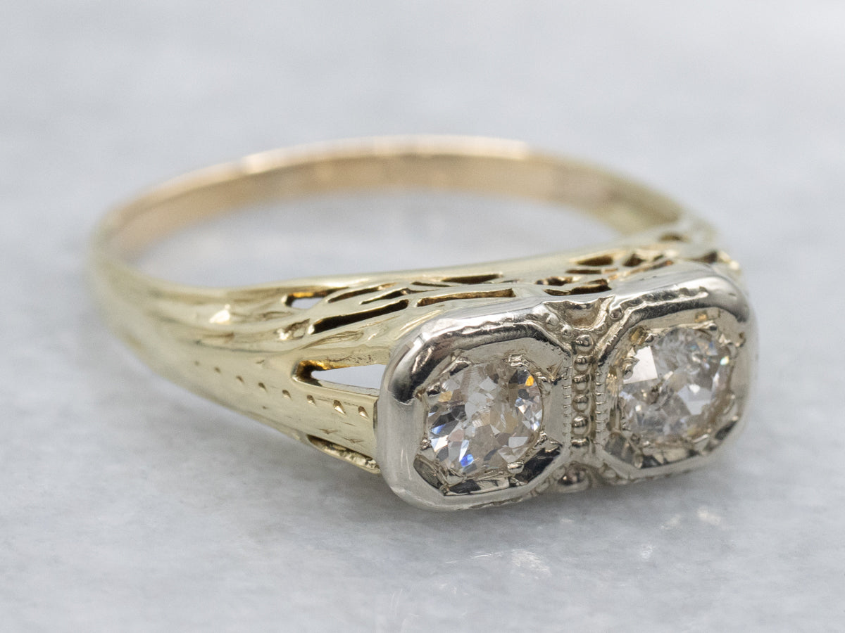 Beautiful Double Old Mine Cut Diamond Gold Art Nouveau Era Engagement Ring