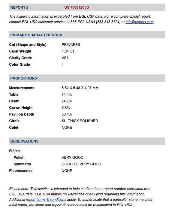 Gem Measurements: 5.8 x 5.4 mm, Princess Cut