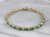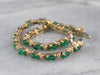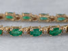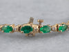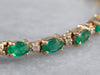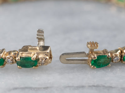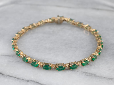 Classic and sophisticated! This tennis bracelet is set with ovals of fine emerald, each accented by bright, round diamonds on either side. The framework is open, allowing plenty of light to come through the stones of this glittering bracelet. This is a timeless piece that would make a great gift!