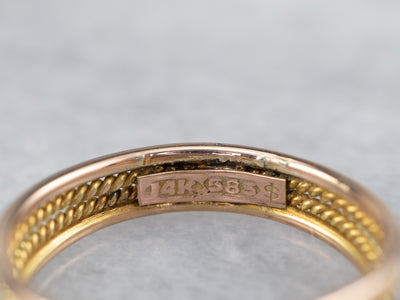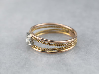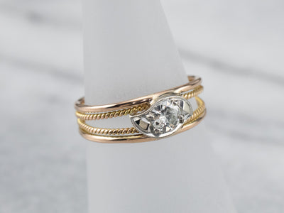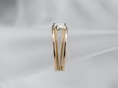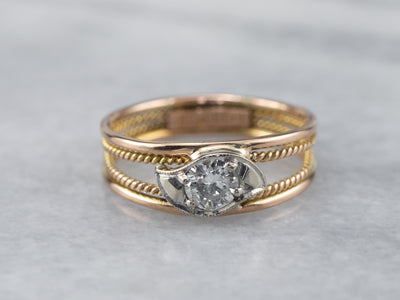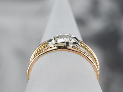 Metal: 14K Yellow and White Gold Gem: Diamond 0.30 Carats, G in Color, SI2 in Clarity Gem Measurements: 4.1 mm, Round Ring Size: 5.50 Marks: "14K 585" Stamped on the inside band