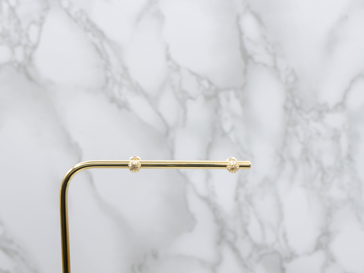 These exquisite vintage faceted dome studs showcase the timeless elegance of 14-karat yellow gold, featuring a beautifully crafted screw-back threader post design that ensures secure, comfortable wear. The delicate dome silhouette catches light with refined sophistication, making these studs an ideal choice for those who appreciate classic jewelry craftsmanship.