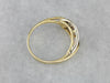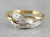 This vintage ring is not terribly old, dating to the 1980's or so. The style is slightly abstract, very free form, and completely sophisticated. The center arch of diamonds rises slightly above the sides, letting plenty of light in to the whole piece.
