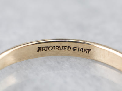 Metal: 14K Yellow and White Gold Gem: Diamond .20 Carats, SI1 in Clarity, I in Color Gem Measurements: 4.0 mm, Round Ring Size: 7.50 Marks: "ART CARVED 14KT" Stamped on the inside band