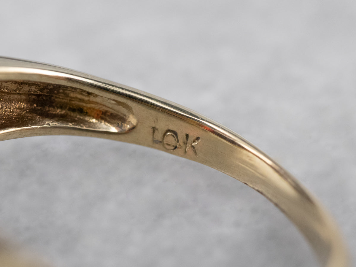 This beautifully structured vintage mounting holds a bold stone! This gem is a gorgeous deep red garnet, weighing in at nearly 10 carats. Garnets are known for their exceptional color and play of light, and this gem is opulent and sophisticated.