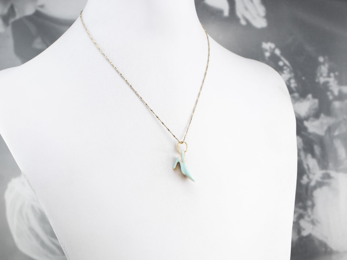 A lovely gift for your favorite fashionista, this blue-bird enamel stiletto is sleek and luxurious, without being overly ostentatious. Perfect for a pendant, this is a great size for a bracelet charm as well!