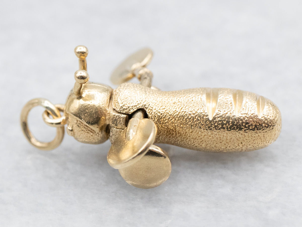 This bumble bee charm is ready for takeoff! Crafted of 14-karat gold, this sweet charm features moving wheels and wings!