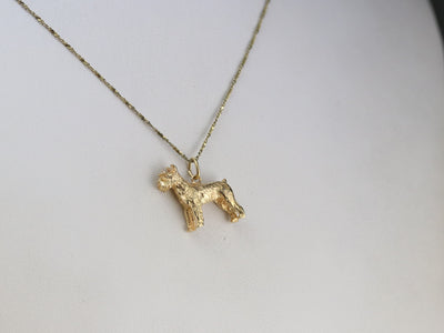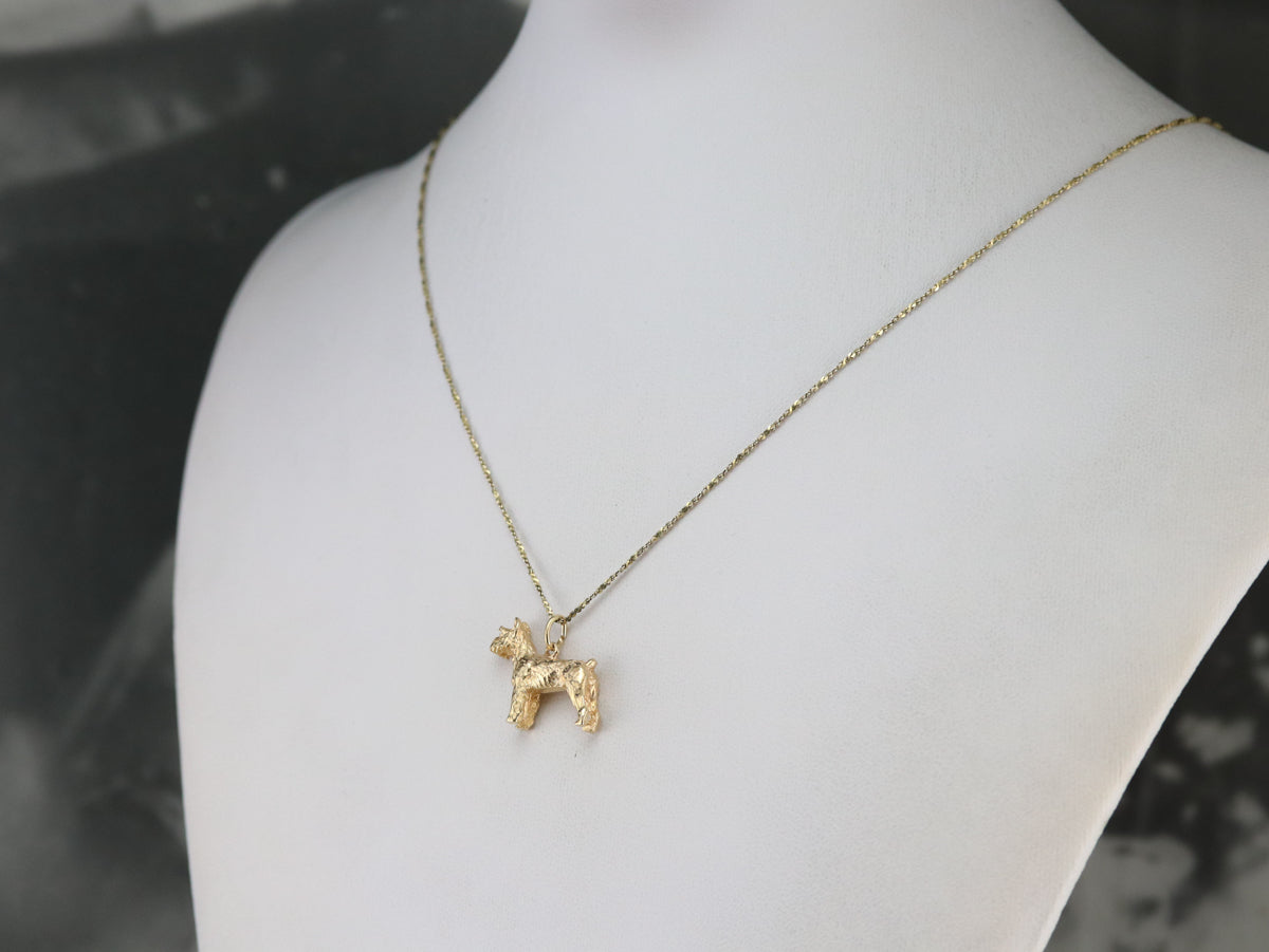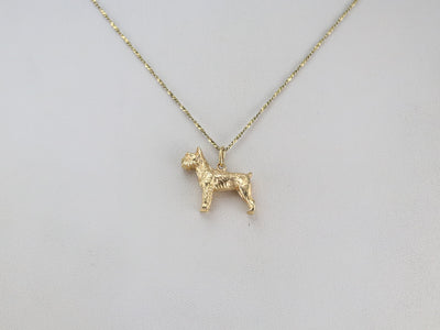 This vintage charm is solid gold and could be worn as a pendant as well. The details are extraordinary, with wonderful linework indicating the muscles and a distinctly cute expression on the little pup's face! Particularly nice the way this fellow stands on his own, perfect for a display case!