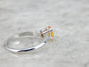 Elegant and simple, this vintage mounting is crafted of polished white gold in a traditional style! The timeless setting holds an unusual variety of a classic gem, a beautiful sapphire in deep, golden yellow! Lovely hints of sunshine and buttercup radiate from the center of this pretty stone.