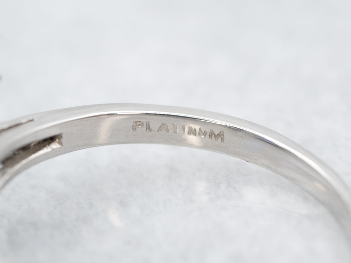 This vintage sapphire and diamond engagement ring is the epitome of a classic! This intense blue Ceylon sapphire is a perfect, rich color, the benchmark for a fine sapphire. The crisp blue hue is filled with glitter and it has phenomenal light refraction, depth of color, and sparkle on the finger! We've set this in a tasteful platinum mounting featuring bright diamonds on either side, equal in quality and sparkle to this lovely center sapphire. The ring was originally designed as an engagement piece, but we think it will make a wonderful cocktail or anniversary ring as well.