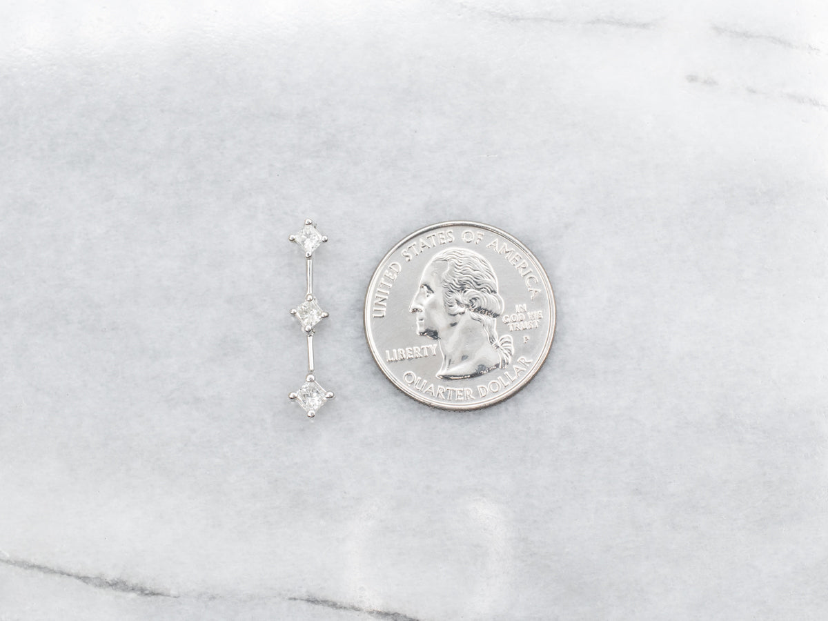 Metal: 14K White Gold Gem: 3 Diamonds totaling .50 Carats, I in Clarity, I-J in Color Gem Measurements: 3.5 mm, Princess Cut Measurements: 6 x 24 mm