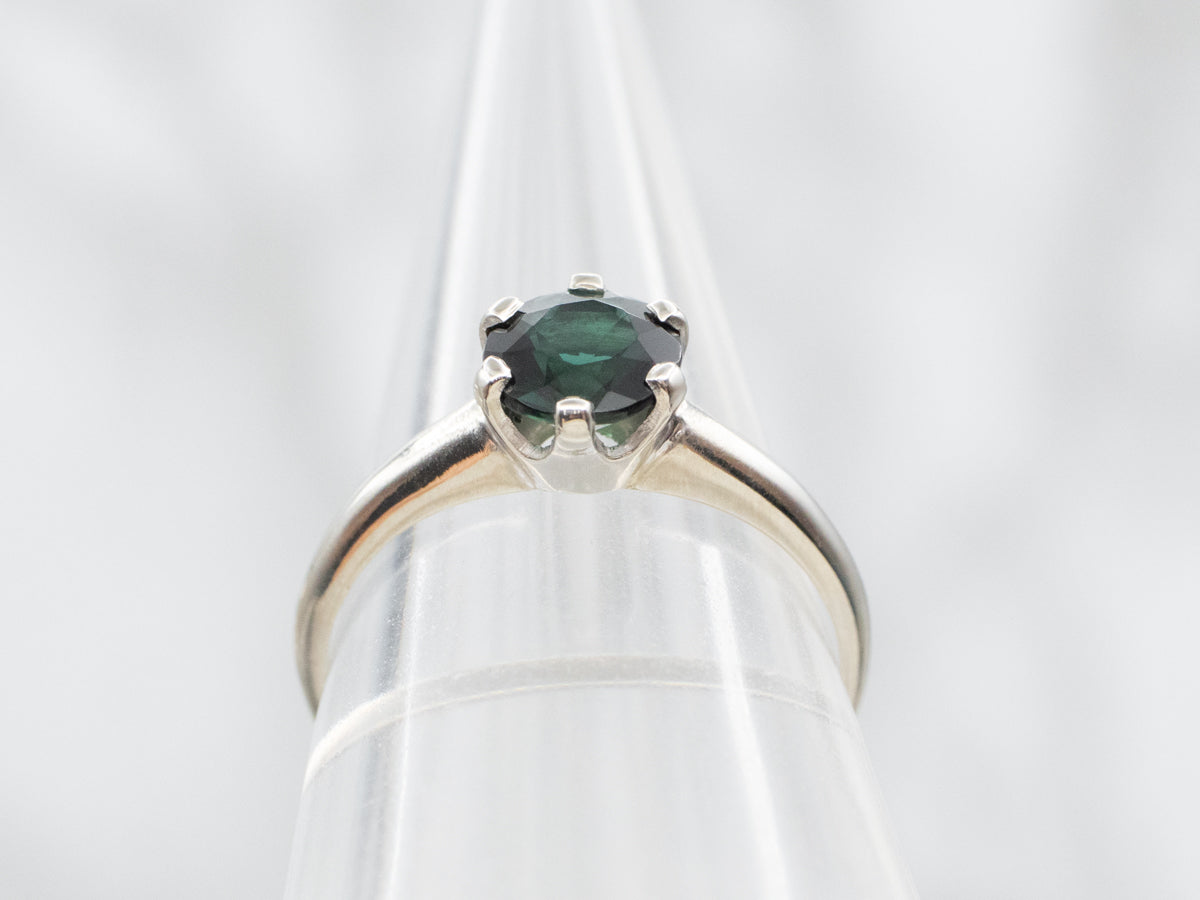 Metal: 10K White Gold Gem: Indicolite Tourmaline .95 Carats Gem Measurements: 6.3 mm, Round Ring Size: 6.50 Marks: "10K D.B." Stamped on the inside band