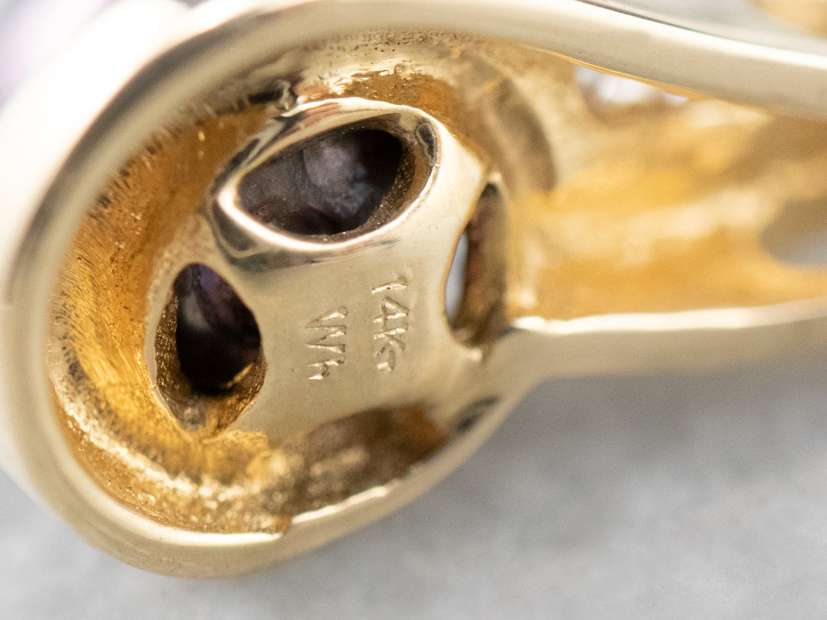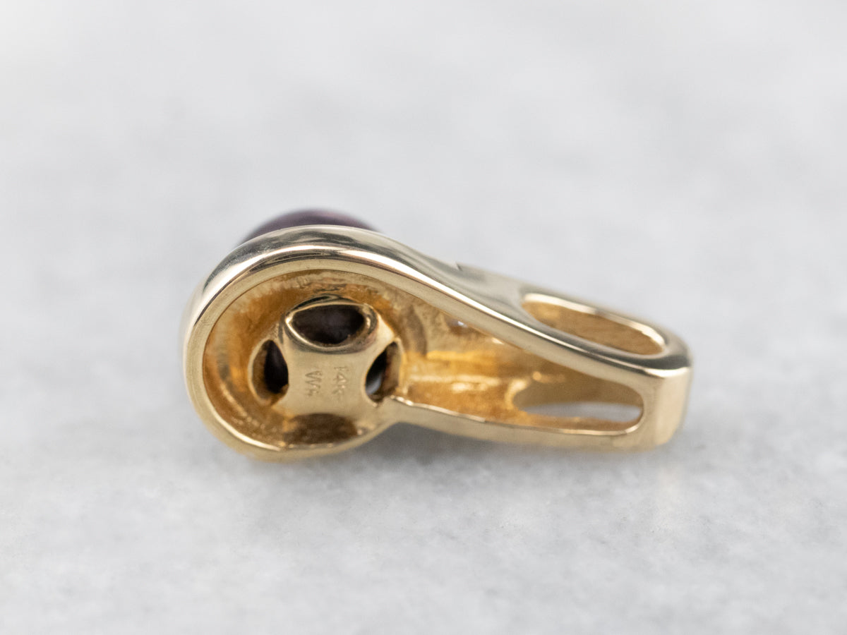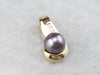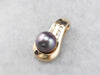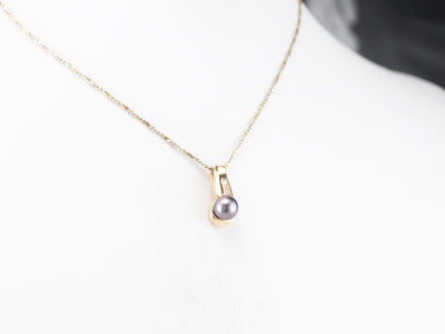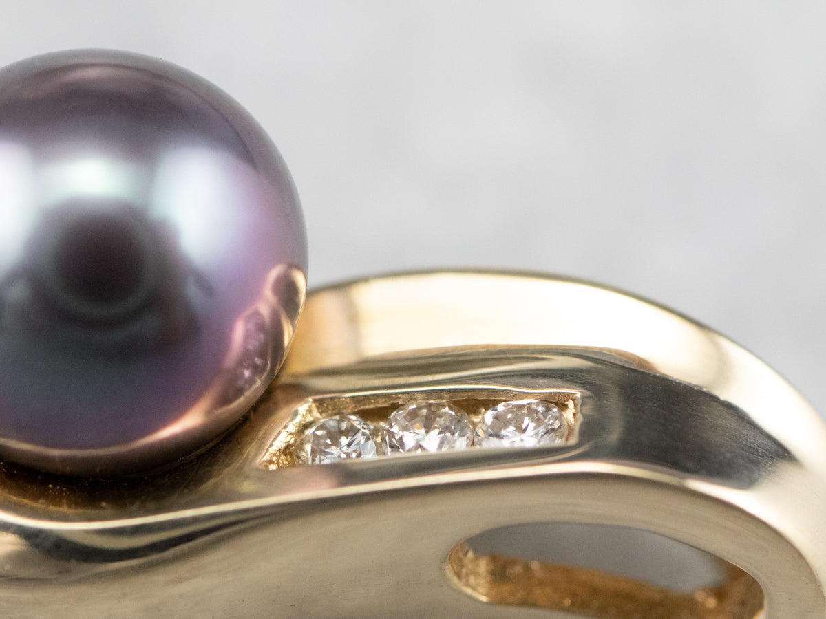 This pearl pendant is simple, yet stylish! The pearl is an elegant shade of grey, perfectly paired with the warm tones of yellow gold. A trio of diamonds adds a bit of glamour without being ostentatious.