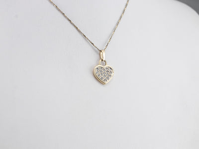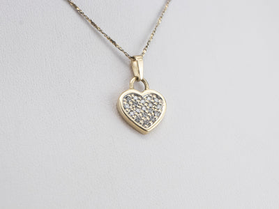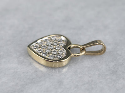 This heart pendant makes a sweet sentiment! Glittering diamonds form a lovely sparkly center for the traditional heart in yellow gold. This pendant is a great size for layering!