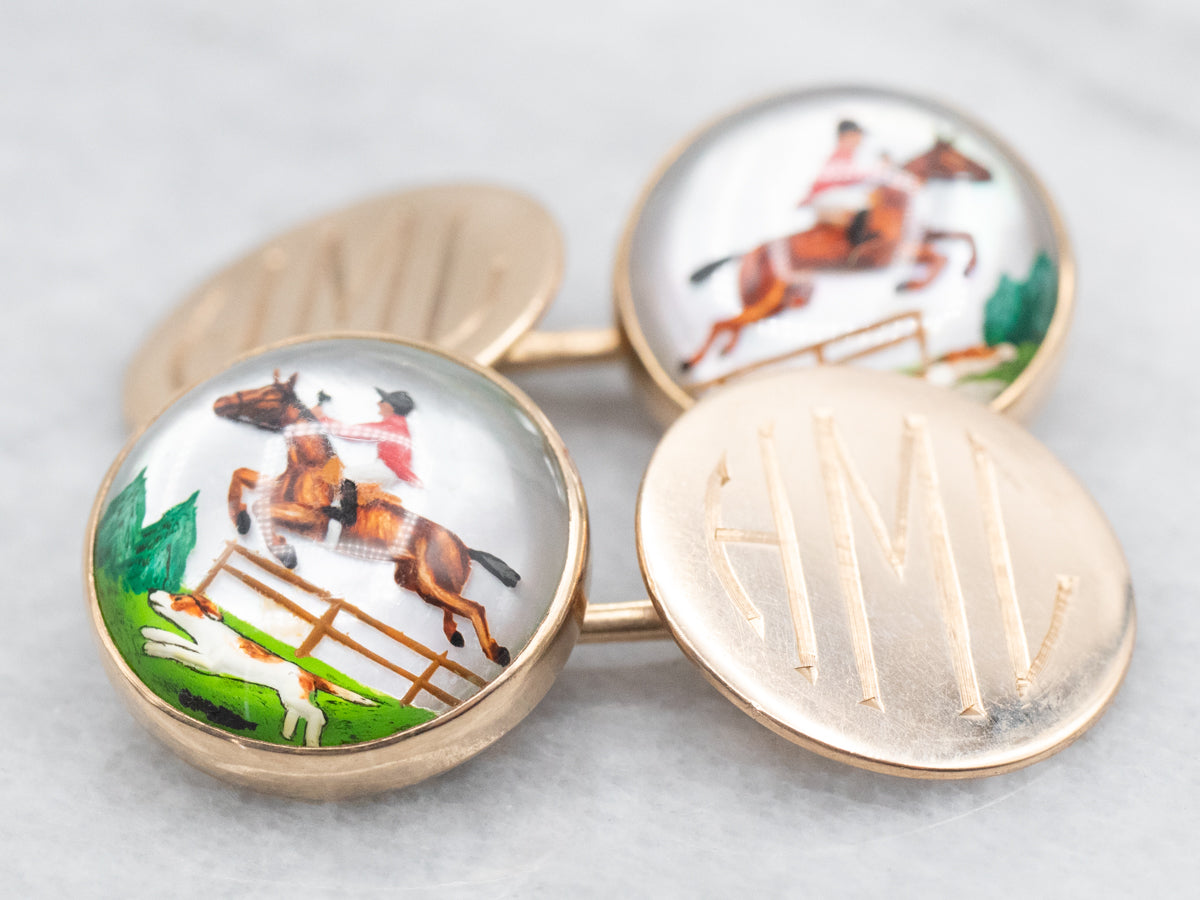 Antique Essex Crystal Fox Hunt "HML" Engraved Cufflinks