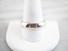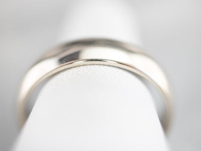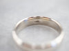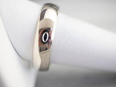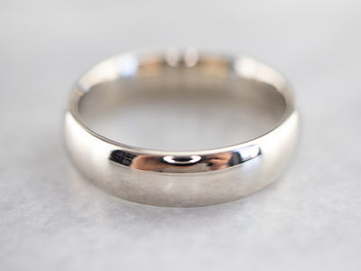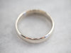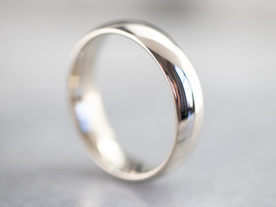 This 14K white gold band is smooth and soft, with a wonderful shining polish! The width of the ring gives it a substantial presence on the finger, although it sits low to the finger and is easy to wear.