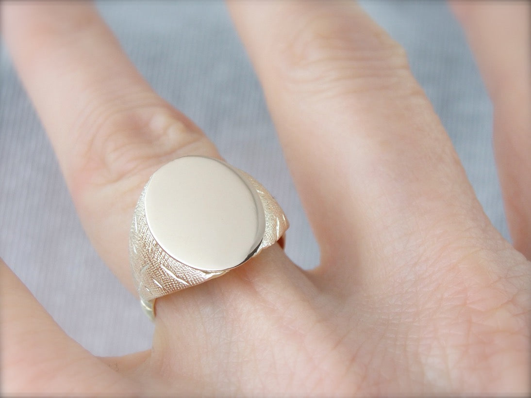 What a perfect signet ring! We love the way that the undercarriage of this ring is hidden. The design creates the look of a weighty, heavy ring, but in fact this is an easy to wear piece, with an affordable price point thanks to the lattice work undercarriage!