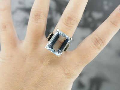 This exquisite gemstone is one of the finest quality aquamarine currently in our collection, filled with glitter and shine, this high-quality stone has been expertly faceted to bring out the highlights of teal and cerulean in this unbelievable aquamarine! Set in a polished mounting of yellow gold, the shoulders are accented with a stylized snowflake, a fitting motif for this icy gemstone!