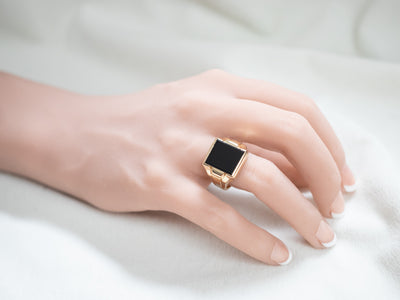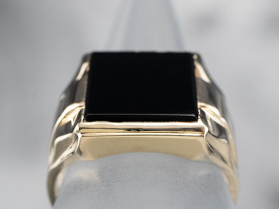 Metal: 14K Yellow Gold Gem: Black Onyx Gem Measurements: 13.7 x 12.2 mm, Rectangle Ring Size: 9 Marks: "14K" Stamped on the inside band