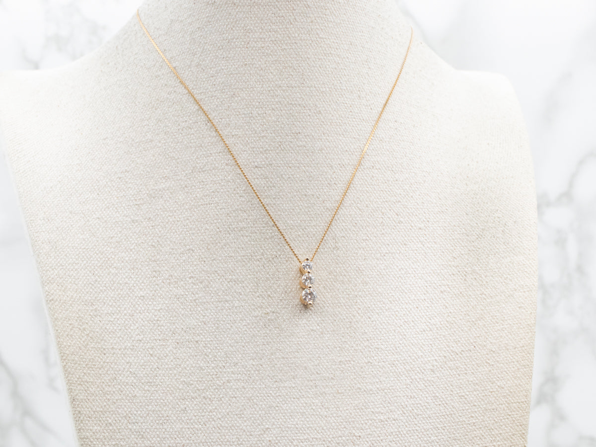 Expertly crafted and certified by IGI, this pendant features a trio of brilliant-cut diamonds in a stunning three-stone design. Elevate any look with this timeless and versatile piece, guaranteed to add a touch of elegance and sophistication to your ensemble!