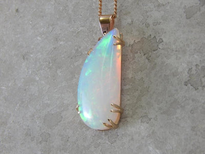Metal: 14K Yellow and Rose Gold Gem: Opal 22.56 Carats Gem Measurements: 35.5 x 15.6 mm, Pear Marks: "14K" Stamped on the reverse