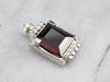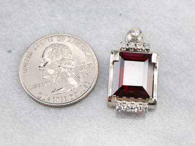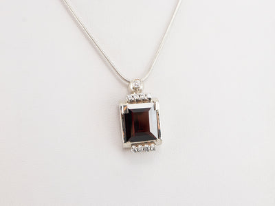 We transformed a Retro Era watch into this dazzling pendant! The garnet is exquisite, its deep scarlet hue brought to life with vibrant flashes of color from within. An array of diamond accents extends the sparkle to the entire pendant, creating a design that is truly glamorous.