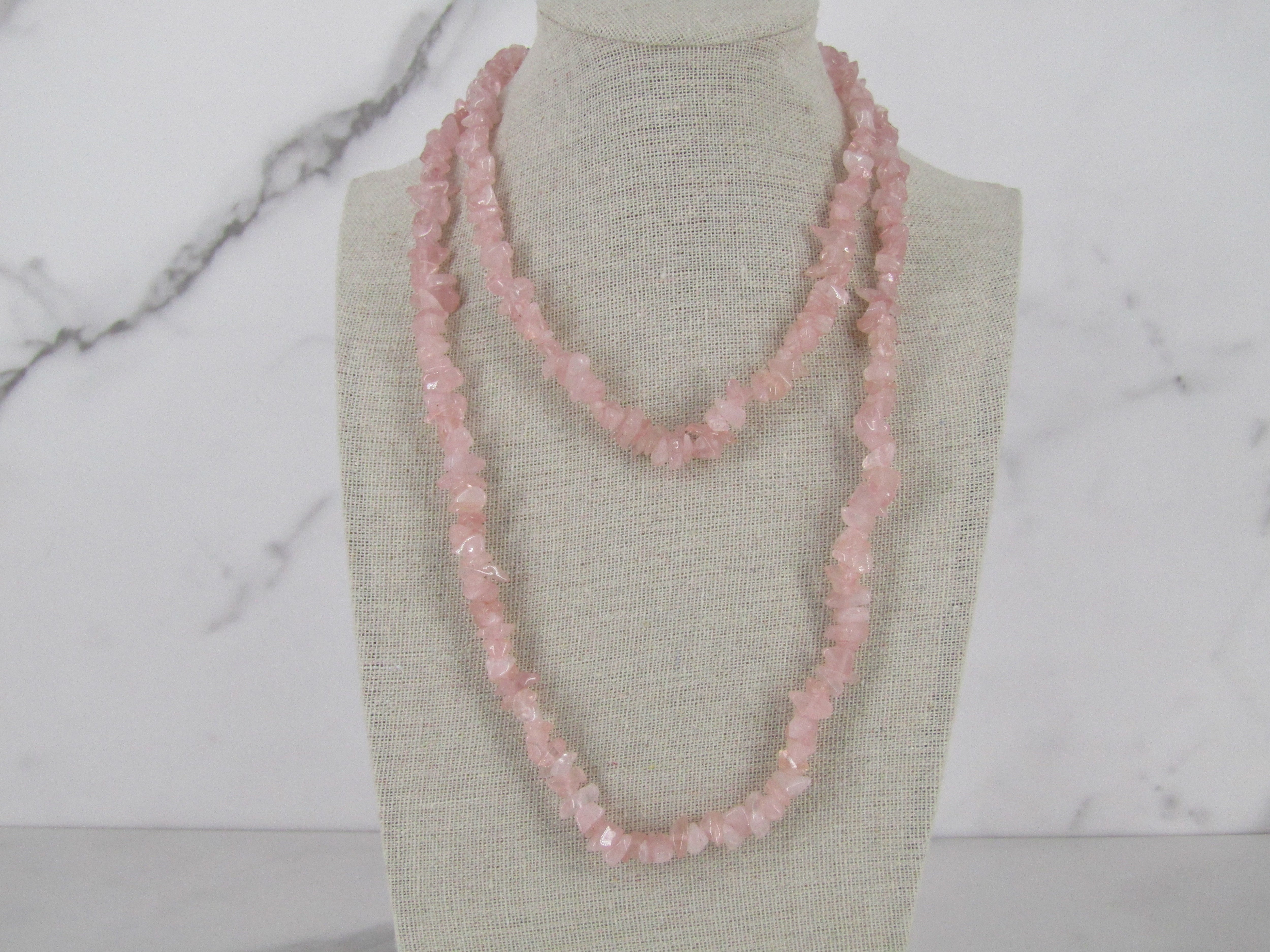 Rose quartz 34 inch bead necklace.
