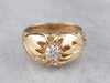 Metal: 14K Yellow Gold Gem: Old Mine Cut Diamond .52 Carats, I in Color, SI1 in Clarity Gem Measurements: 5.2 mm, Round Ring Size: 7 Marks: "14K" Stamped on the inside band