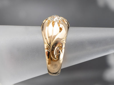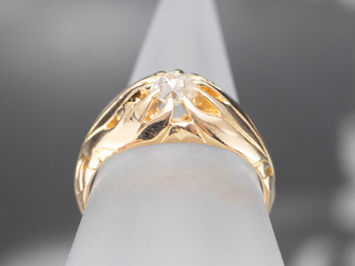 This Victorian solitaire ring has such warmth and charm, that it is difficult to overstate its beauty! From the botanically styled shoulders to the claw prong style Belcher setting, this solitaire ring exudes romance. The centerpiece of this gorgeous mounting is an old mine cut diamond, a gem as special as the ring itself.