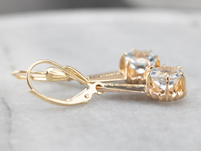 We've set these gems in buttercup heads of yellow gold, capped with twisting gold pieces from a vintage brooch. The earring wires are secure leverback crafted of 14 karat yellow gold.
