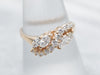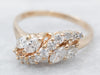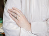 The use of both marquise and round-cut diamonds gives this vintage ring a bright, gleaming sparkle! We love the versatility of this piece, which would look just as well as a singular wedding band or cocktail ring, as it will be worn alongside a simple engagement piece.