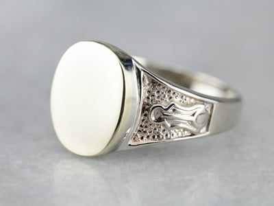 Classic, traditional and very stately, this vintage signet ring features a polished top and masonic symbols on its sides creating a wonderful visual effect, and is sure to be a conversation starter!
