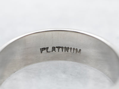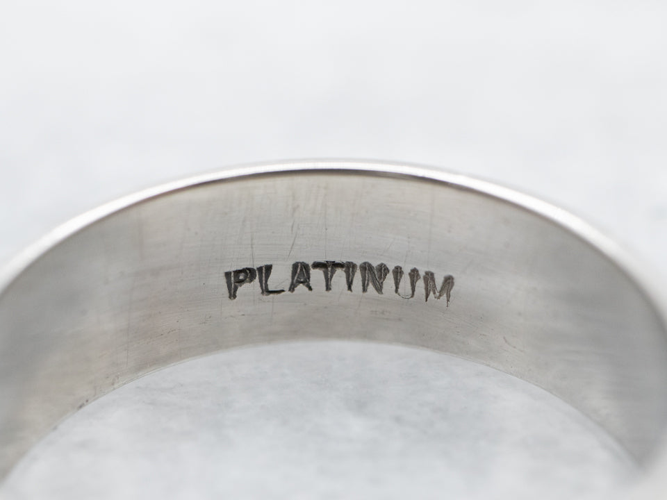 Metal: Platinum Width of Band: 6.5 mm Height off Finger: 1.9 mm Ring Size: 8.25 Marks: “PLATINUM” Stamped on the inside band