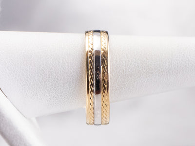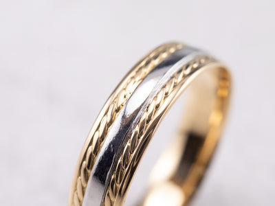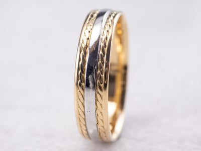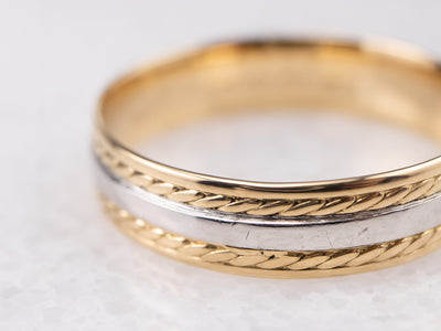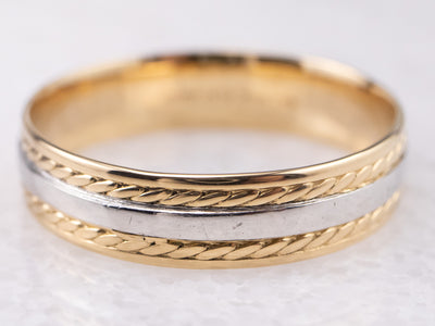 This shinning vintage band is crafted from the highest quality materials: hefty 18 karat yellow gold and platinum that is perfectly polished and shines with light! Weighty on the finger, comfortable and substantial, this two-tone, mixed metals piece is sized for a gentleman with a larger hand but can be easily sized down, just contact us for more information!