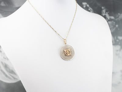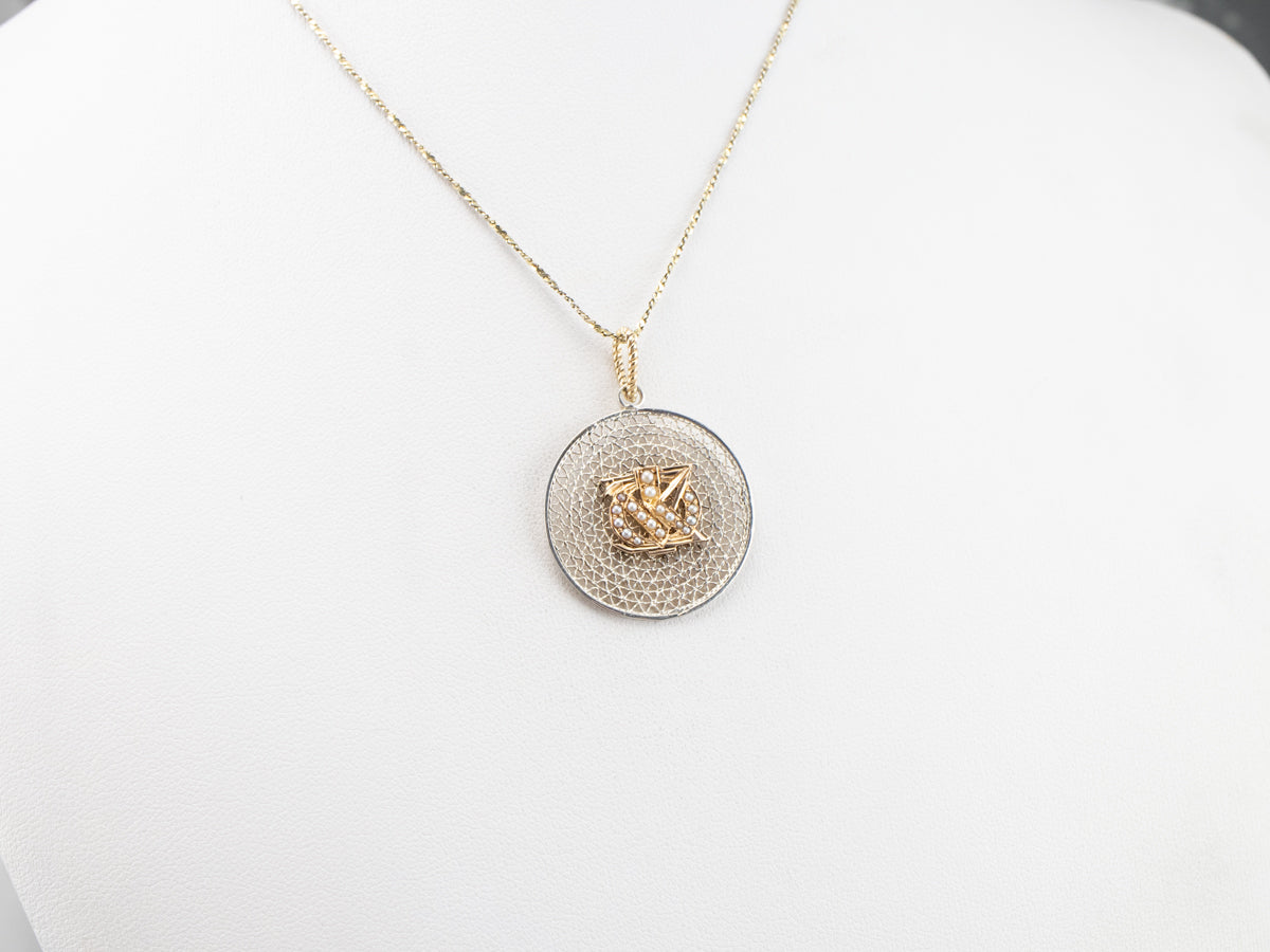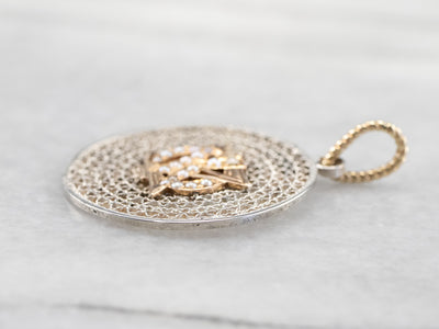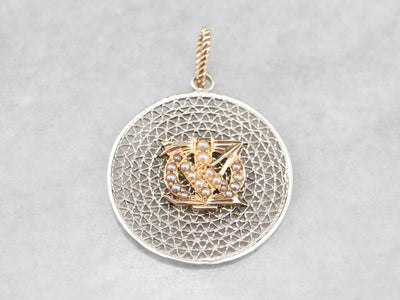 We've handcrafted this pendant using components from the Victorian and Mid Century periods! The detail in the etched antique gold piece and scrolling filigree is extraordinary, giving this piece a sense of movement. Set with its original seed pearls, this is a wonderfully unique piece, ready to wear or gift!
