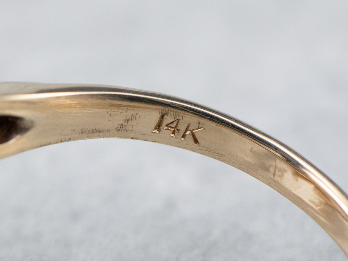 Sweet and flowing in style, this beautiful 1950's era ring has lovely lines, but still manages to stay symmetrical. The twinkling diamonds throughout this vintage piece are bright and filled with light, making this piece a stunning Retro cocktail ring!